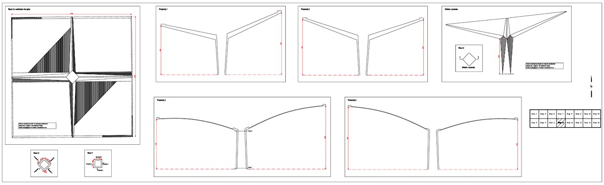 Sporządziliśmy dokumentację geometryczną słupów celem ich odtworzenia w trakcie modernizacji. Sporządzono rzuty poziome oraz przekroje pionowe 16 słupów.