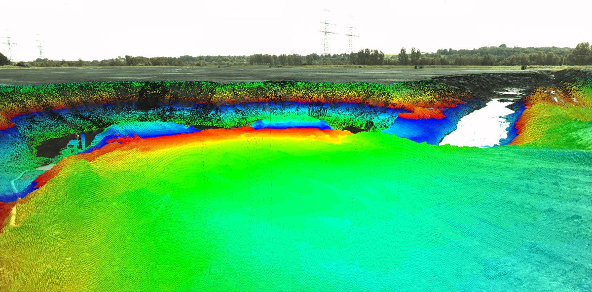 Wykonujemy comiesięczne pomiary inwentaryzacyjne pozwalające na dokładne określenie objętości wyeksploatowanego materiału. Wykorzystujemy do tego celu skaner dalekiego zasięgu. Powierzchnia zbiornika wynosi 86.400m2, głębokość eksploatacji 9m.